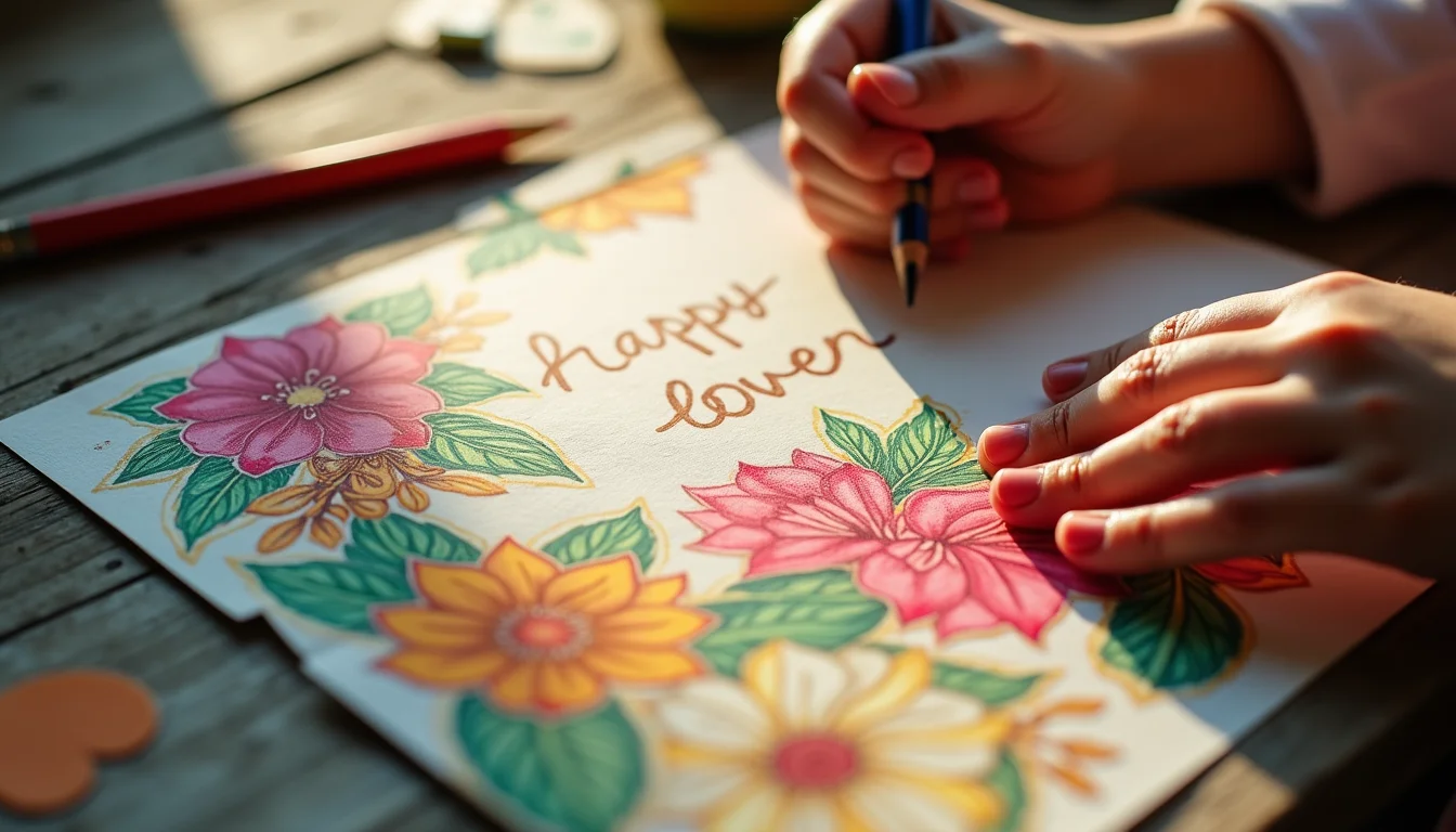 Um cartão feito à mão carrega uma beleza que nenhum presente comprado consegue replicar: a textura do traço infantil, a escolha das cores, o tempo dedicado.