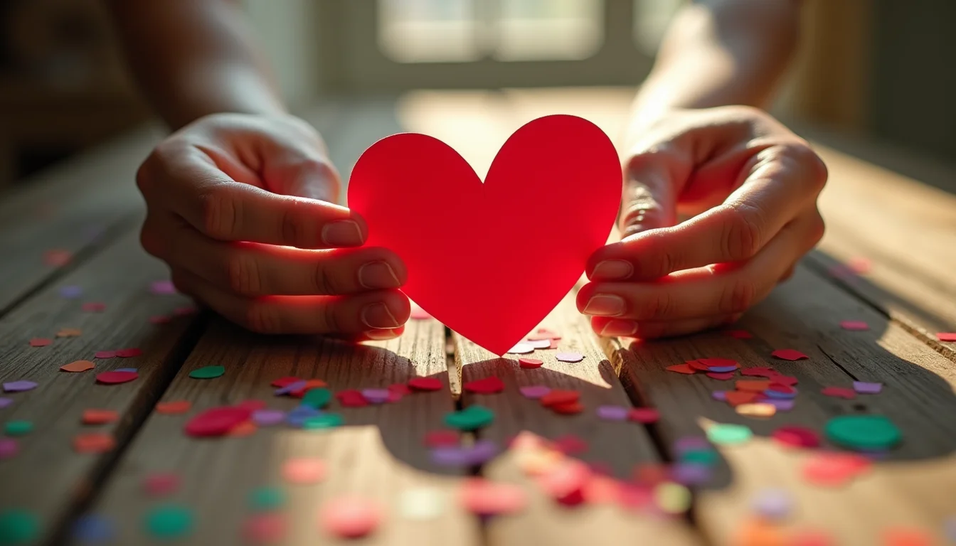 O contorno de um coração bem recortado reflete luz como uma joia. Cada curva precisa de uma tesoura afiada e mão firme.