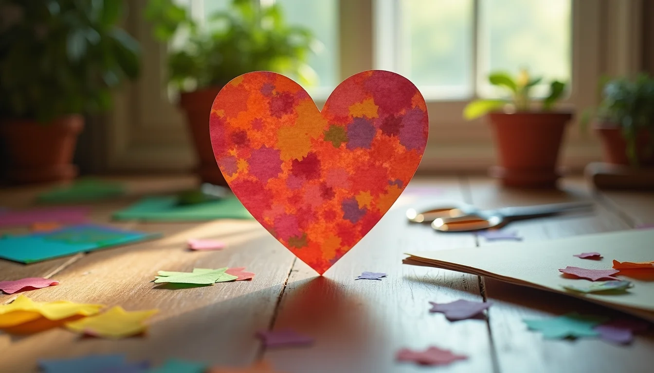 - Texturas que transformam: Experimente papéis texturizados ou metalizados para dar relevo visual. Um coração liso pode ser elegante, mas um com textura ganha vida sob a luz.