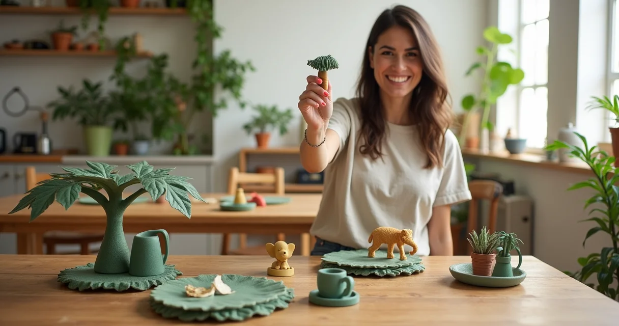 O centro de mesa é o coração da decoração, não é mesmo? Com o EVA, você pode criar peças que roubam a cena sem pesar no bolso. Que tal usar bases de CD reciclado para fixar coqueiros e bichinhos em 3D ou até mesmo planos?
