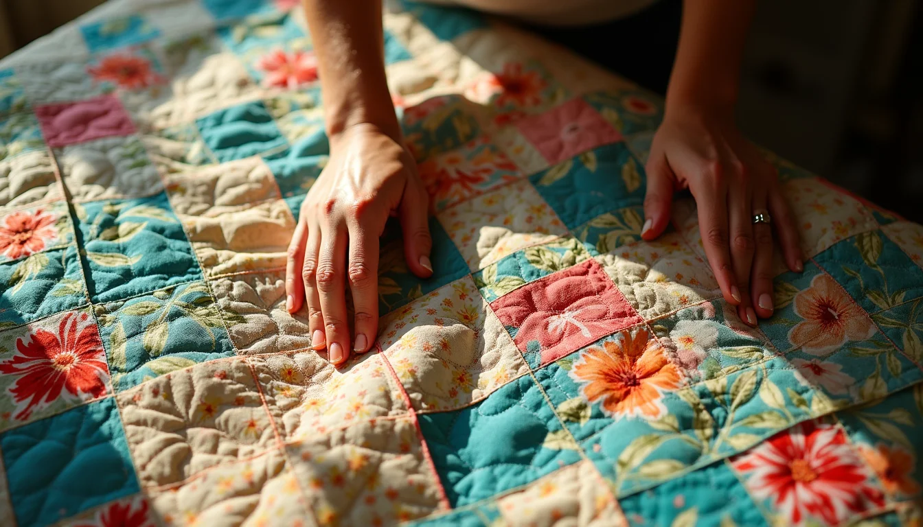Experimente formas geométricas simples como quadrados dentro de quadrados ou linhas em zigue-zague. Aprender padrões de colcha básicos aumenta a confiança para projetos mais complexos.