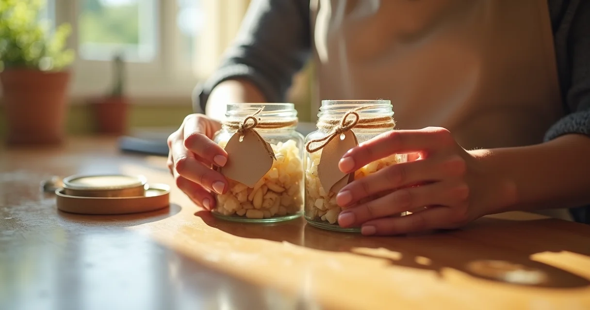 Para sair do óbvio, pense em algo que tenha a ver com a história do casal ou com os hobbies de vocês. Um casal que ama café pode dar mini pacotes de café especial. Um casal que adora jardinagem pode presentear com vasinhos de suculentas com embalagem de papel kraft. O importante é que a lembrancinha conte um pouco de vocês. A personalização com rótulos customizados é fundamental aqui.