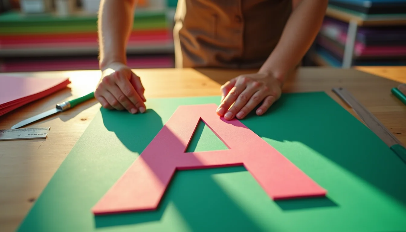 Ferramentas de corte são outro ponto crítico. Tesouras de precisão com lâmina microserrilhada ou estilete com lâmina nova garantem cortes limpos, sem rebarbas. E para dar aquele toque profissional, faça o sombreamento das bordas com tinta acrílica ou de tecido usando um pincel chato seco – isso cria profundidade e destaca a letra no painel.