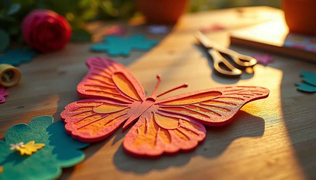A chave para um bom molde de borboleta 3D está na precisão dos cortes e na habilidade de criar dobras que simulem a leveza e a forma natural das asas. A escolha do papel também é fundamental, com gramaturas entre 180g e 250g sendo ideais para manter a estrutura sem ficar pesado.