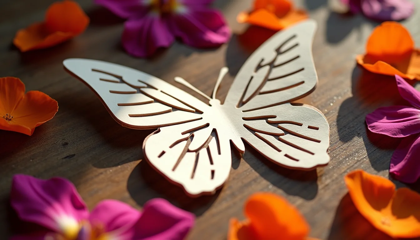- Aplique camadas de tinta acrílica com pincel seco para criar relevo sutil nas asas da borboleta. Esse efeito tridimensional valoriza cada recorte e dá profundidade ao projeto.