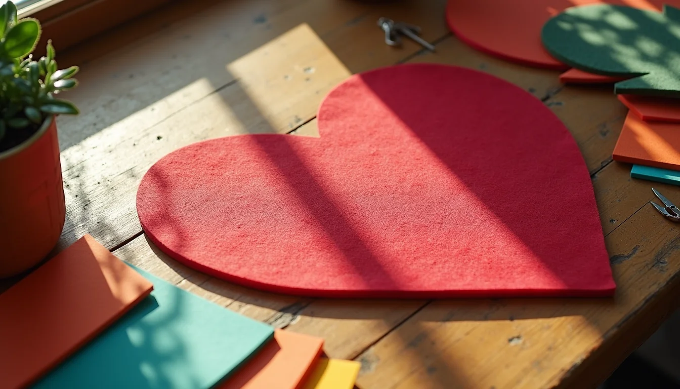 Considere usar cores vibrantes de feltro para destacar a forma do coração em seus projetos de patchwork ou apliques.