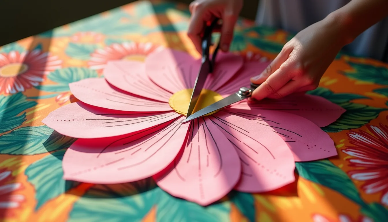 Ferramentas de corte, como as máquinas de Silhouette, facilitam a reprodução fiel dos moldes. Isso garante precisão e agilidade, mesmo para quem está começando no mundo das flores gigantes.