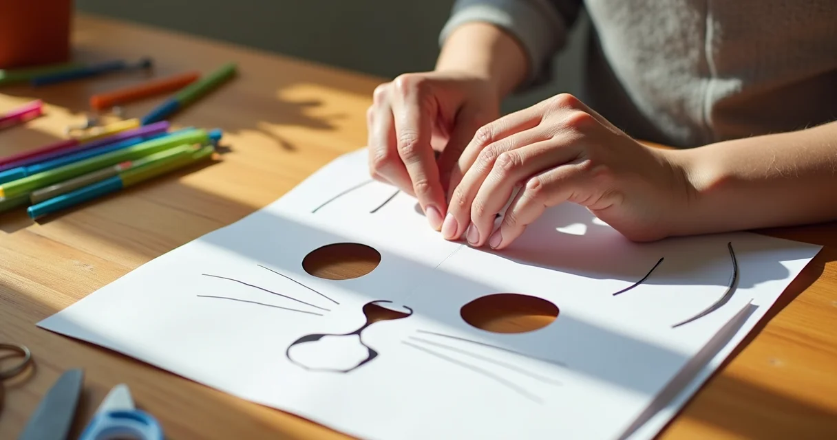 - Passo 3: Transfira para o Material Principal – Se você imprimiu em papel e vai usar esse papel como máscara, já tá quase pronto. Mas se a ideia é usar E.V.A. ou feltro, transfira os moldes recortados para o material escolhido. Use um lápis ou caneta que não apareça muito. A dica é usar cores diferentes para as orelhas e o focinho, dando um charme extra.