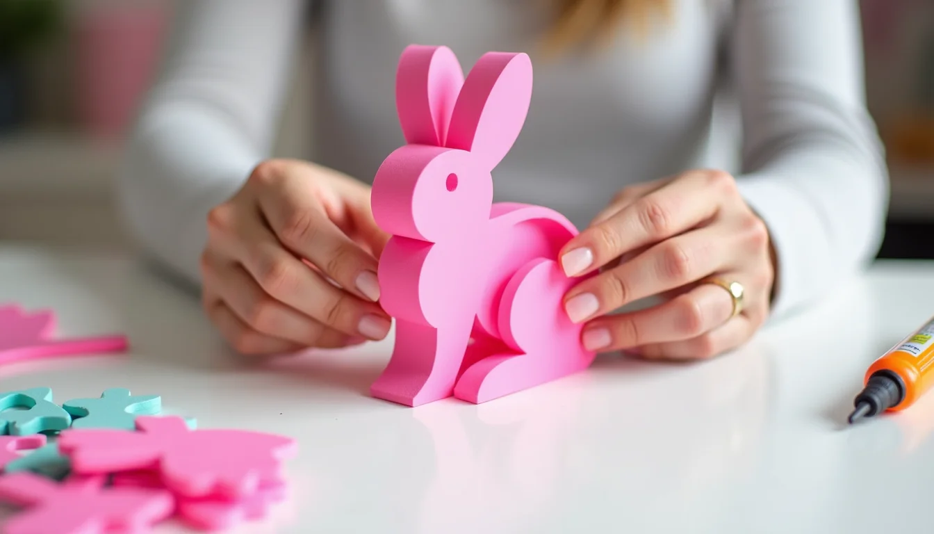 - Passo 3: Recorte as Peças – Use tesoura ou estilete para cortar todas as partes do coelho.