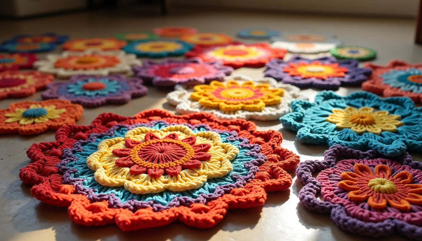 Tipos de Flores em Tapetes de Crochê: Relevo vs. Rasteiras