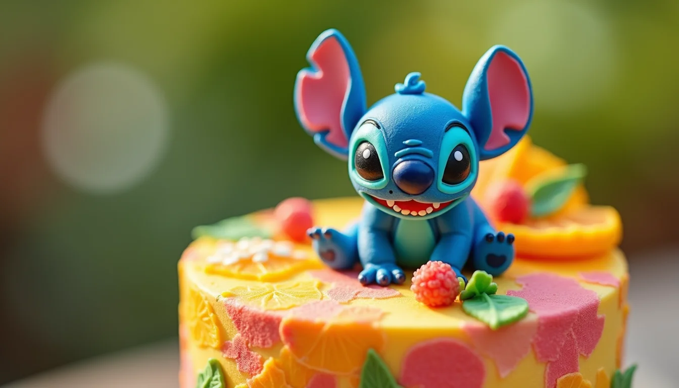 Imagine o Stitch surfando, tocando ukulele ou dançando. Esses toppers trazem movimento e muita personalidade para o bolo.